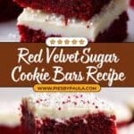 Delight in these luscious Red Velvet Sugar Cookie Bars, featuring a soft and tender cocoa-flavored sugar cookie base topped with a rich and creamy cream cheese frosting. Perfectly balanced with a hint of vanilla and a vibrant red hue, these bars are a festive treat ideal for holiday gatherings or any special occasion.