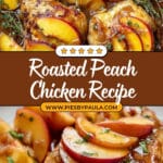 This Roasted Peach Chicken Recipe features juicy, tender chicken breasts marinated in a flavorful peach preserve mixture, then seared and oven-roasted with fresh peaches and red onions. The perfect balance of sweet and savory makes this dish ideal for a delightful summer meal or an impressive dinner.