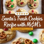 Santa’s Trash Cookies are a delightful mix of sweet and salty with a variety of textures and flavors. Packed with m&m’s, peanut butter chips, potato chips, and pretzels, these cookies offer a unique twist on the classic chocolate chip treat. Perfect for holiday baking or anytime you want a fun and flavorful cookie.
