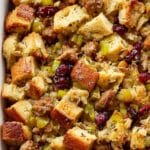 This Sausage Cranberry Herb Stuffing Recipe is one of those dishes I come back to year after year because it just hits all the right notes: savory, sweet, herbaceous, and texturally perfect. When I first made it, my family went crazy for how the cranberries elevated the traditional sausage stuffing. I hope you give this recipe a try and find it as effortless and crowd-pleasing as I do. Trust me, it’ll become a staple in your cooking rotation, too!