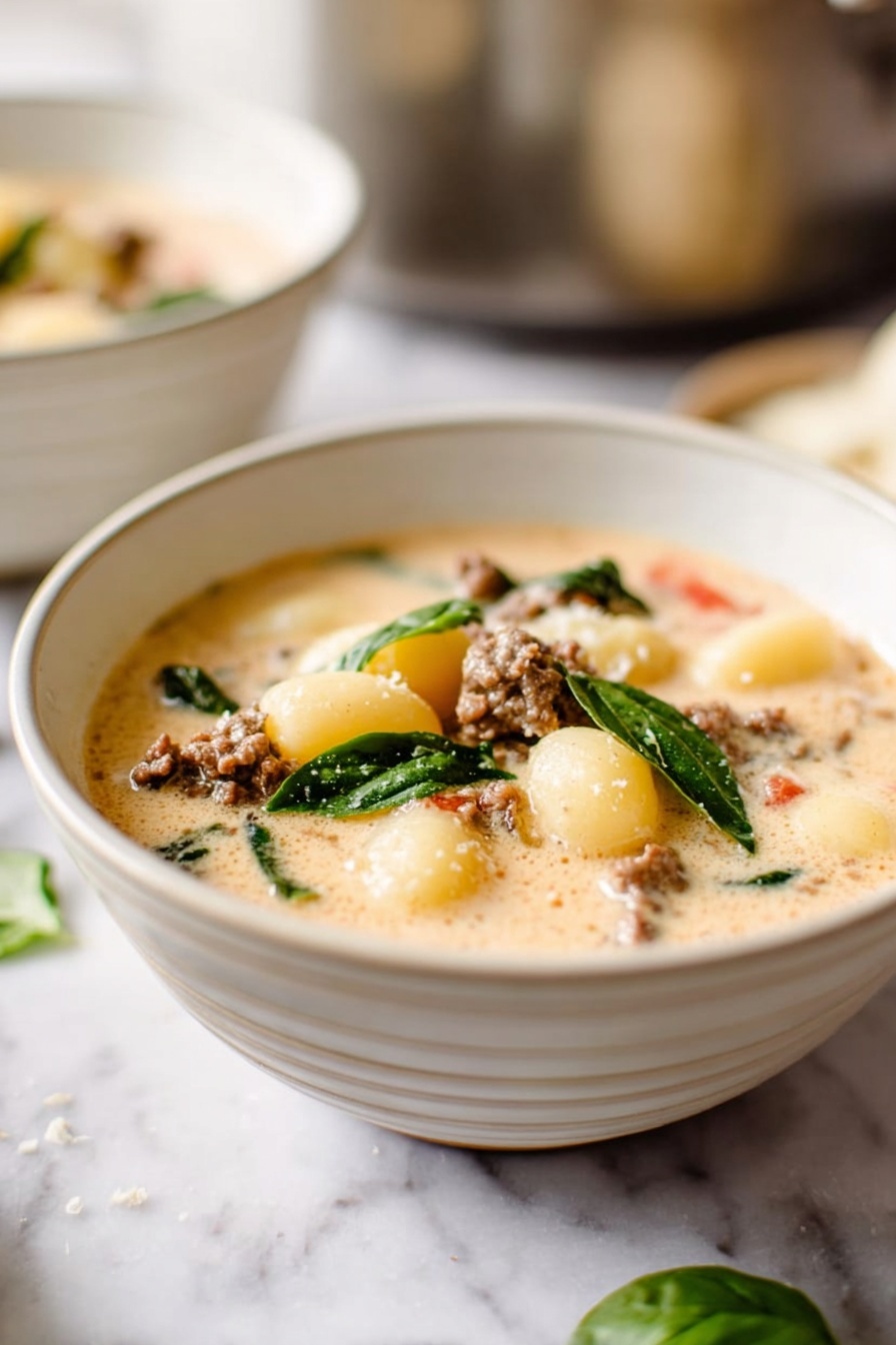 This hearty Sausage Gnocchi Soup combines savory Italian sausage with tender potato gnocchi in a creamy, flavorful broth enhanced with fresh vegetables and herbs. Perfect for a comforting meal, this soup features a blend of aromatic spices, fresh tomatoes, and spinach, simmered to perfection to deliver a rich and satisfying dish that’s both easy to make and delicious.