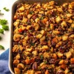 I love how versatile this Sheet Pan Stuffing with Apples, Sausage, Cranberries, and Pecans Recipe is. I often tweak it based on what’s in season or who I’m cooking for, and you should too! Making it your own is part of the fun.