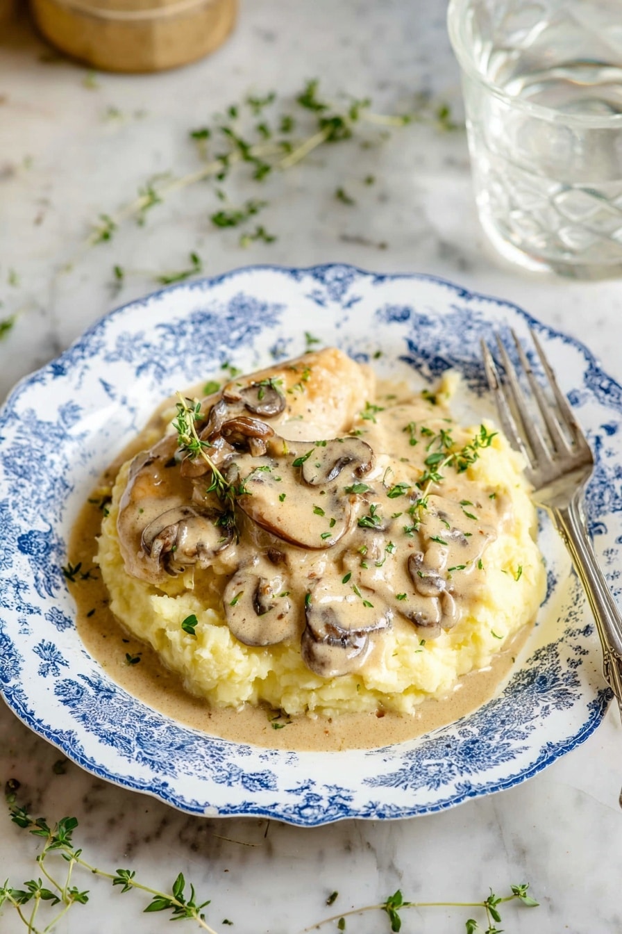 My top choices are creamy mashed potatoes or buttered egg noodles to soak up every drop of that luscious mushroom thyme gravy. Roasted green beans or a simple side salad bring some crunch and balance to the plate.