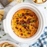 - Add Garnishes: After cooking, sprinkle additional cooked bacon slices and sliced green onions over the top of the dip for extra flavor and presentation.