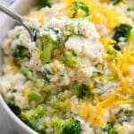 - Add Creamy Ingredients to Rice: Stir the plain Greek yogurt (if using), grated Parmesan cheese, and shredded cheddar cheese into the rice mixture in the slow cooker until combined.