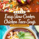 This Easy Slow Cooker Chicken Taco Soup is a hearty, flavorful dish perfect for cozy nights. Loaded with black beans, pinto beans, corn, diced tomatoes, and tender shredded chicken, all simmered in a zesty tomato and salsa base with homemade taco seasoning. Simply throw everything in a slow cooker, let it cook for 6 hours, and enjoy a comforting meal topped with your favorite garnishes like avocado, cheese, or sour cream.