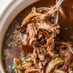 - Serve: Spoon the shredded roast and onions along with the flavorful sauce onto plates. Serve with mashed potatoes and slices of cheesy bread for a complete and delicious meal. Enjoy!