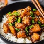 - Serve and Garnish: Once cooked, serve the General Tso’s chicken over steamed rice. Garnish with sliced green onions, sesame seeds, and additional red pepper flakes if desired for extra flavor and presentation.