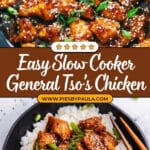 This Slow Cooker General Tso’s Chicken is an easy and flavorful recipe perfect for a hands-off dinner. Tender chicken cubes are lightly browned, then slow-cooked in a sweet, tangy, and slightly spicy sauce made from hoisin, soy sauce, brown sugar, garlic, rice wine vinegar, and a blend of spices, delivering classic Asian-inspired flavors with minimal effort. Serve over steamed rice and garnish with green onions and sesame seeds for a restaurant-quality meal at home.