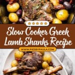 This Slow Cooker Greek Lamb Shanks recipe features tender, flavorful lamb shanks slow-cooked with baby potatoes, Kalamata olives, sundried tomatoes, and a fragrant Greek spice rub. Perfect for a comforting, Mediterranean-inspired meal with minimal effort.