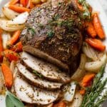 Yes, you can adapt this recipe for an Instant Pot using the pressure cook setting. I’d recommend about 40-50 minutes of pressure cooking, then natural pressure release. Just be sure to sauté your veggies and butter rub mixture for extra flavor before pressure cooking if you have time.