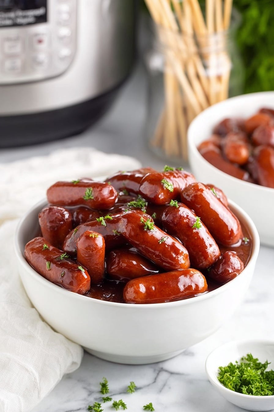 Before serving, stir everything once more to coat all the sausages evenly in that luscious sauce. This is when it becomes irresistible—warm, sticky, and loaded with flavor. Serve immediately while warm, and watch them disappear!