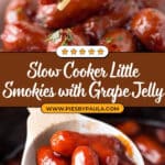 This Little Smokies with Grape Jelly recipe is a classic and effortless slow cooker appetizer combining savory cocktail sausages with sweet grape jelly and tangy BBQ sauce for a crowd-pleasing party treat.