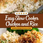 - Resist the urge to open the slow cooker lid during cooking to maintain the heat and moisture for perfectly cooked chicken and rice.