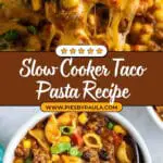 This Slow Cooker Taco Pasta is a comforting and easy-to-make meal that combines the flavors of classic taco ingredients with hearty pasta. Ground beef, roasted tomatoes, beans, and taco seasoning are slow-cooked together, then mixed with pasta and melted cheese for a creamy, flavorful dish perfect for busy weeknights.