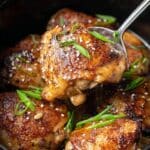 This Slow Cooker Teriyaki Chicken Thighs recipe features tender, juicy chicken thighs cooked to perfection in a flavorful Veri Veri Teriyaki sauce. The chicken is first browned to develop a rich, savory crust, then slow-cooked for hours to achieve melt-in-your-mouth tenderness. Served with rice and garnished with sesame seeds and green onions, this easy-to-make dish delivers an authentic taste of Japanese-inspired cuisine with minimal effort.