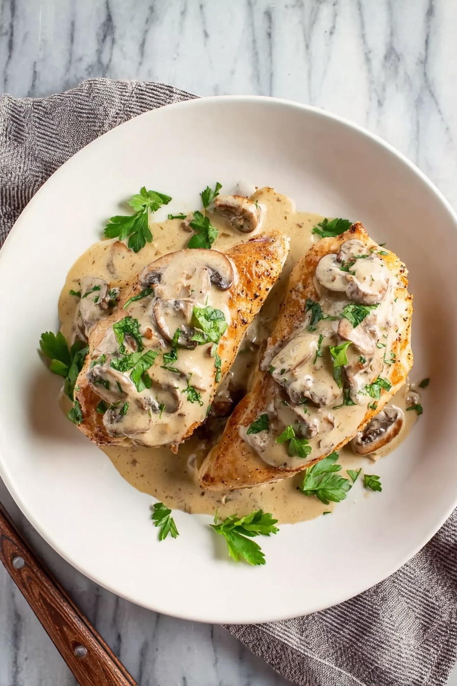 I love finishing this dish with a sprinkle of fresh parsley or even some thinly sliced green onions for a bit of brightness and color contrast. It makes the dish look inviting and adds a layer of fresh flavor that complements the creamy Marsala sauce nicely.