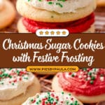 Allow cookies to cool completely on wire racks before frosting. For the frosting, beat softened butter with vanilla until smooth, then add powdered sugar a cup at a time. Thin it with heavy cream until it spreads easily but still holds shape. Divide into bowls and tint with red and green food coloring, leaving some white. Frost, sprinkle with festive toppings, and enjoy!