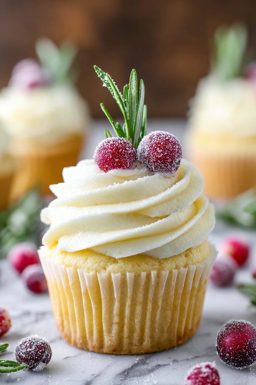 - Impressive Presentation: Sparkling cranberries and rosemary garnish make these cupcakes look like they belong at a fancy party.