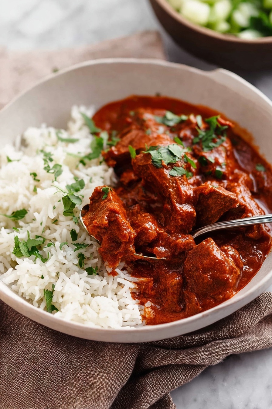 Sprinkle chopped fresh coriander leaves on top just before serving to bring a fresh, vibrant contrast to the spicy richness. Serve your Spicy Beef Vindaloo Recipe with fluffy basmati rice and a side of naan bread to soak up all that delicious sauce. I swear, this combination never fails to impress!