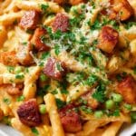 Absolutely! Penne is the classic choice here because it holds sauce beautifully, but feel free to swap in rigatoni, fusilli, or even farfalle. Just keep cooking times in mind so your pasta stays al dente and doesn’t get mushy.