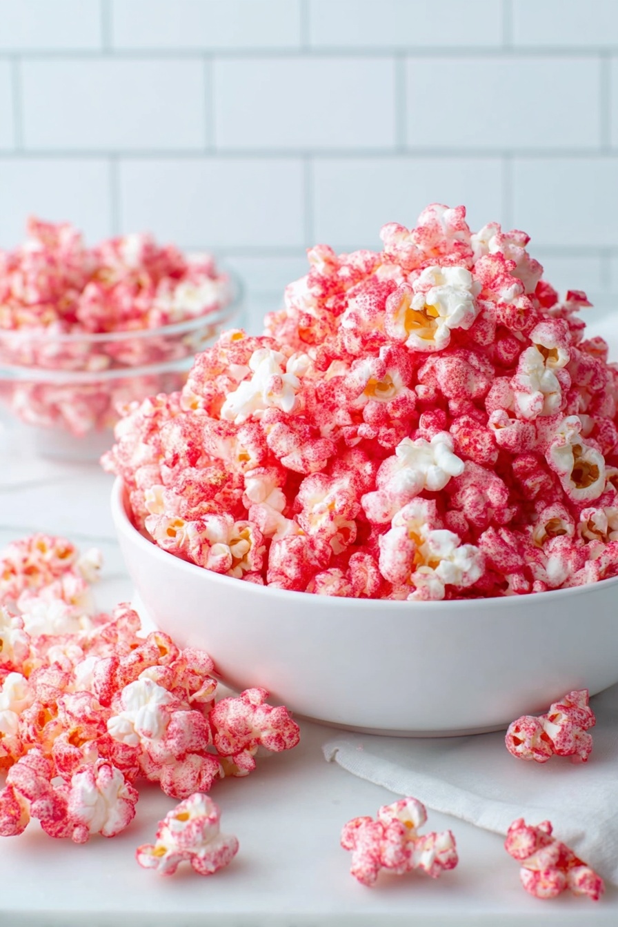 For movie nights or holiday gatherings, I’ve presented this popcorn in festive mason jars with colorful ribbons tied around. Mini paper cones or popcorn boxes lined with parchment are a fun individual serving idea. Sometimes I layer it in glass bowls with alternating layers of plain popcorn for a dramatic red and white effect—my family thinks that’s super fun!
