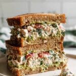 This Spicy Tuna Salad Recipe offers a creamy and tangy twist on the classic tuna sandwich. Made with a flavorful tuna mousse combining Greek yogurt, Dijon mustard, lemon juice, and fresh dill, it’s layered with creamy avocado, herbaceous pesto, and juicy tomato slices on toasted whole wheat bread. Quick to prepare and perfect for a nutritious lunch or light dinner, this recipe balances protein and fresh ingredients with a hint of spice.