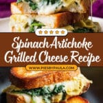 This Spinach Artichoke Grilled Cheese combines a savory blend of fresh spinach, artichoke hearts, garlic, and creamy cheeses sandwiched between hearty bread and golden brown on the skillet. It’s a delicious twist on a classic grilled cheese, perfect for a comforting lunch or snack packed with flavorful greens and melty, cheesy goodness.