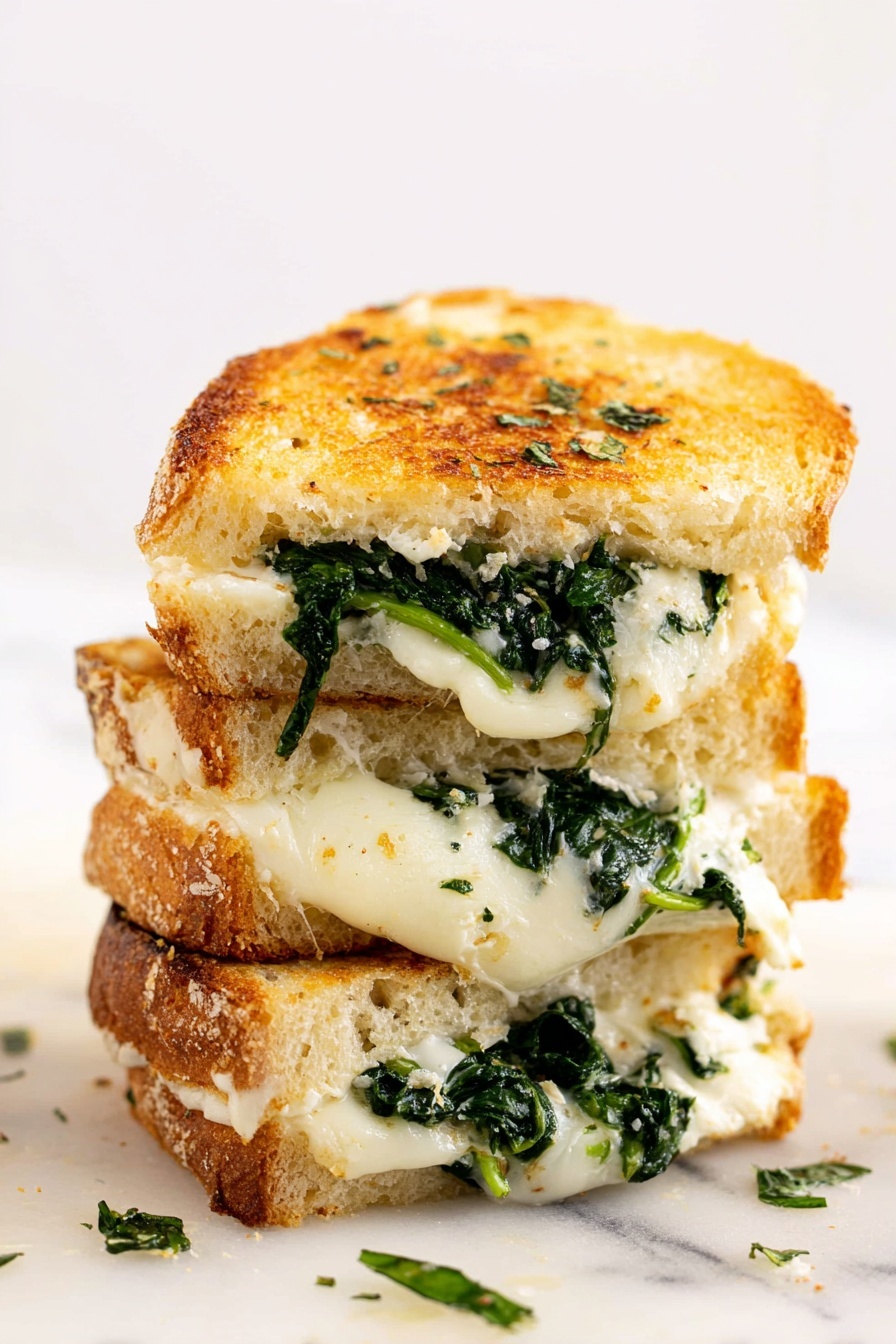 A simple, quick, and delicious Spinach Grilled Cheese sandwich blending fresh sautéed spinach with gooey mozzarella cheese, perfect for a nutritious lunch or snack.