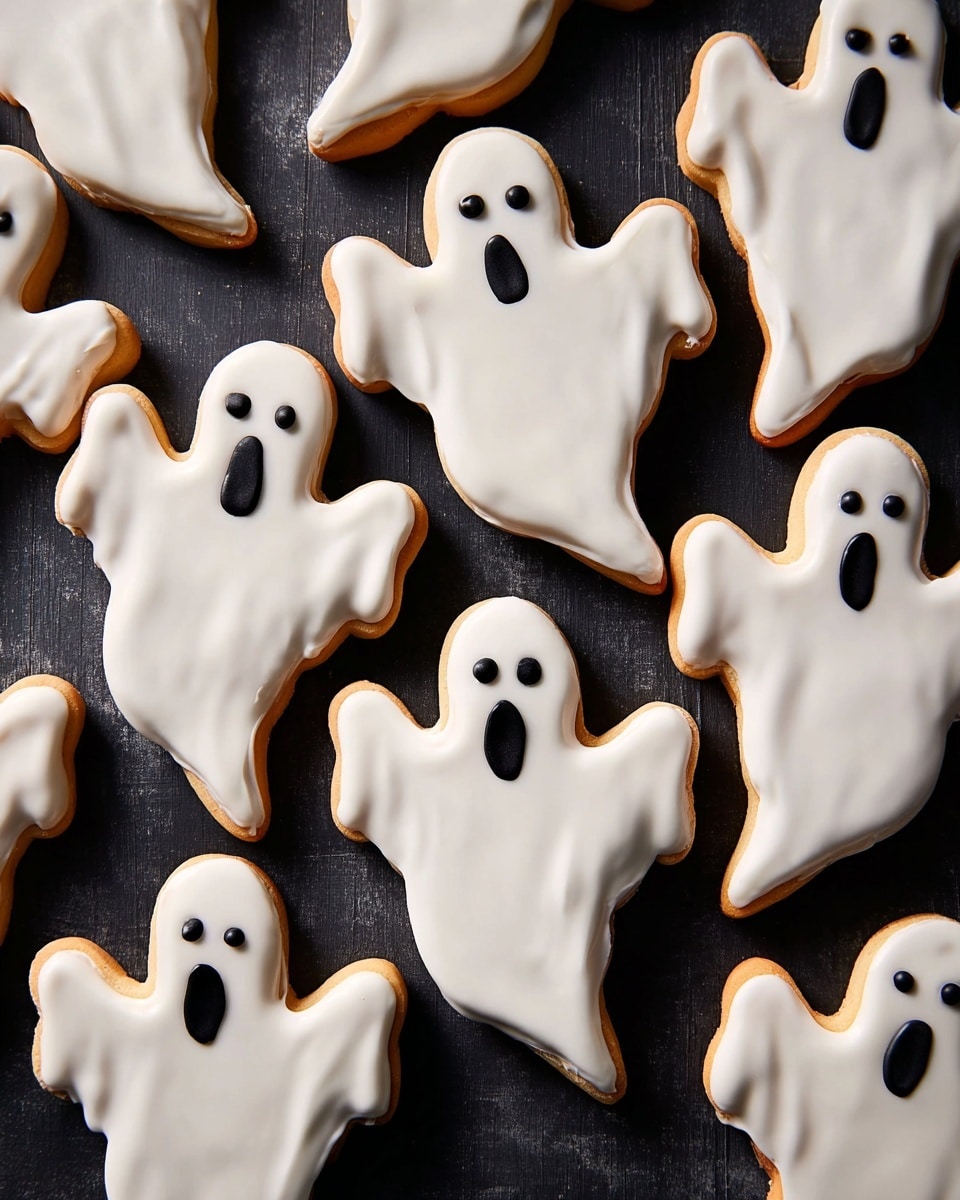 Spooky Ghost Cookies are festive sugar cookies perfect for Halloween or any spooky occasion. These buttery, soft cookies are cut into ghost shapes, baked to golden edges, and decorated with smooth white and black royal-like icing to create fun ghostly faces. The recipe combines a classic sugar cookie dough with a simple homemade icing that hardens beautifully for easy decorating and stacking.