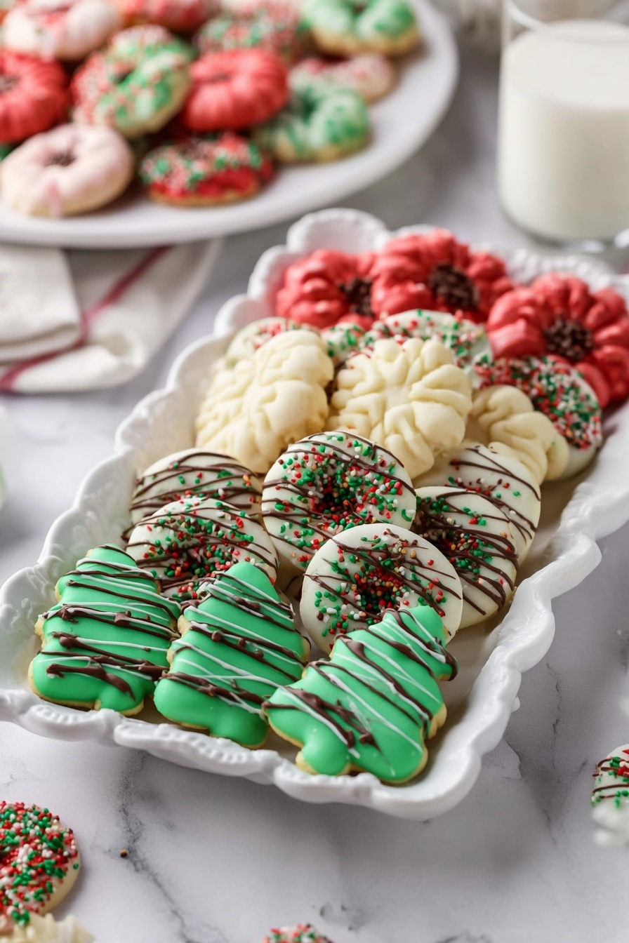 Try layering spritz cookies in clear jars tied with festive ribbons as homemade gifts—my friends treasure them! Or arrange them on colorful platters with complementary cookies or fruit for an eye-catching dessert table. It’s also fun to pipe messages or shapes directly using colored dough for birthdays or celebrations.