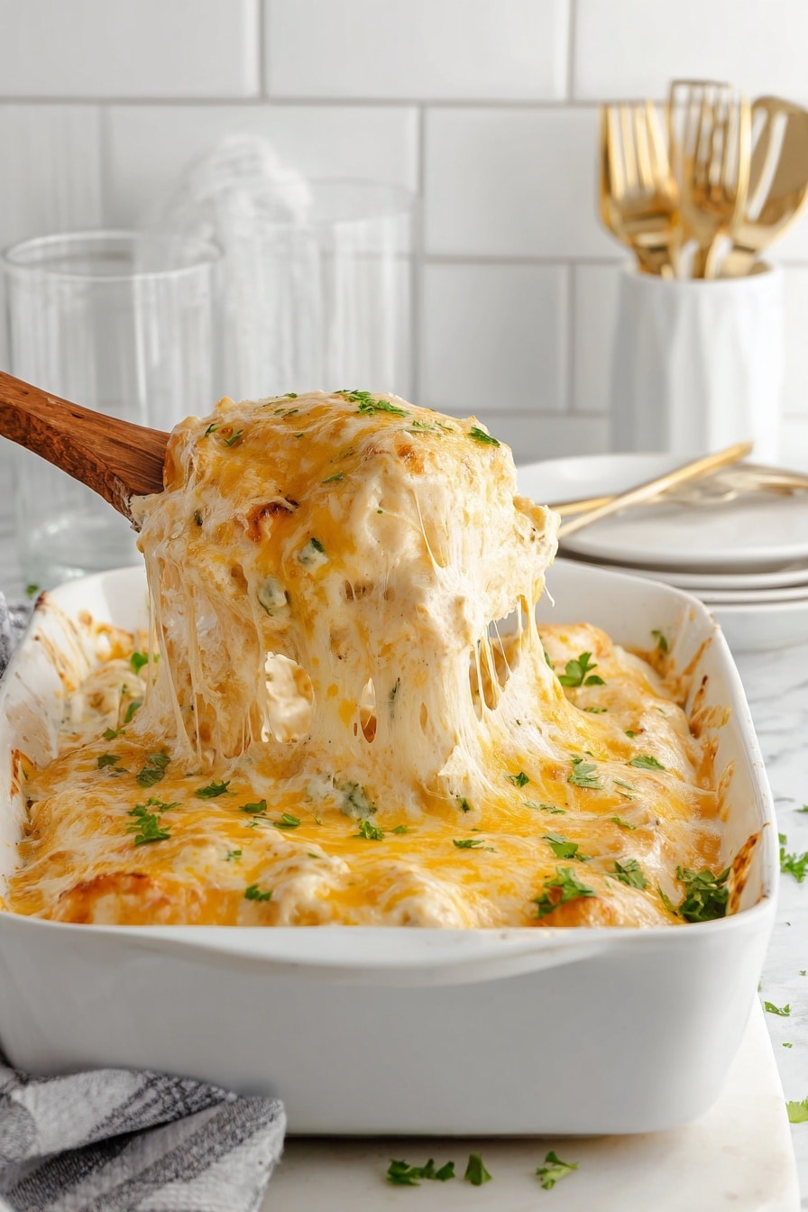 This recipe has a mild to medium spice level thanks to the green chiles and enchilada sauce. If you prefer it spicier, adding fresh jalapeños or a splash of hot sauce amps up the heat easily.