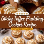 This Sticky Toffee Pudding Cookies recipe elevates the classic sticky toffee pudding into a handheld treat with rich date-infused cookies, luscious toffee sauce, and a silky vanilla bean custard buttercream frosting. Perfectly soft and chewy brown sugar date cookies are paired with a decadent homemade toffee drizzle and creamy vanilla bean frosting for an indulgent dessert experience that combines the best of traditional British sticky toffee pudding with cookies.
