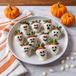 Delightfully spooky and sweet, these Strawberry Ghosts are a fun and easy no-bake treat perfect for Halloween or any festive occasion. Succulent strawberries are dipped in creamy white chocolate, adorned with mini chocolate chip eyes, and decorated with dark chocolate mouths to create adorable ghostly faces. Quick to prepare and sure to impress, these ghostly berries bring a playful charm to your dessert table.