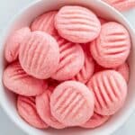 I keep leftover strawberry mint candies in an airtight container at room temperature for up to a week. If your kitchen is humid, pop them in the fridge, but let them come to room temp before enjoying so they’re not too firm. I avoid stacking them too much in the container, layering parchment paper in between helps keep their shape intact.
