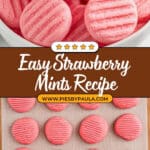 Delight in these classic Strawberry Mints, a nostalgic homemade confection featuring a buttery, sweet, and slightly fruity flavor with a refreshing minty finish. Perfect for sharing at holidays or as a charming gift, these candies are easy to make with simple ingredients and require no baking.