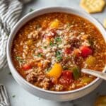 A hearty and comforting Stuffed Pepper Soup that delivers all the flavors of classic stuffed peppers in a warm, delicious soup. Made with ground beef, bell peppers, tomatoes, rice, and a blend of Italian herbs, this recipe offers multiple cooking methods including stovetop, Instant Pot, and slow cooker for flexibility. Perfect for a satisfying weeknight meal with a rich tomato and beef broth base.
