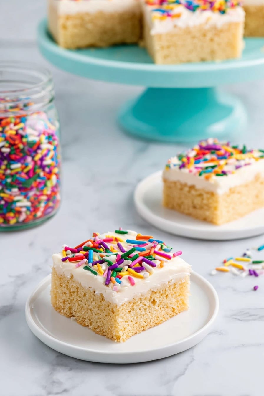 Delightfully soft and classic Sugar Cookie Bars topped with creamy vanilla frosting and festive sprinkles, perfect for any celebration or a sweet treat any day.