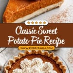 This classic Sweet Potato Pie recipe features a smooth, spiced sweet potato filling nestled within a flaky 9-inch pie crust. With warm notes of cinnamon, ginger, and allspice, this Southern-inspired dessert is baked to perfection and topped with a luscious homemade whipped cream, making it an ideal treat for holidays or any gathering.
