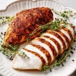 This flavorful Turkey Tenderloin recipe features a savory spice rub with garlic, brown sugar, paprika, and coriander, seared to develop a golden crust and finished by baking in the oven to juicy perfection. Perfect for a simple yet impressive main dish that serves 4 to 6 people.