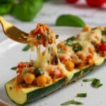 This Tuscan Stuffed Zucchini Boats recipe offers a delightful vegetarian meal packed with wholesome ingredients like quinoa, chickpeas, sun-dried tomatoes, and spinach. Baked to perfection with melted mozzarella and fresh basil, these zucchini boats are perfect as a nutritious dinner or hearty lunch that’s both flavorful and satisfying.