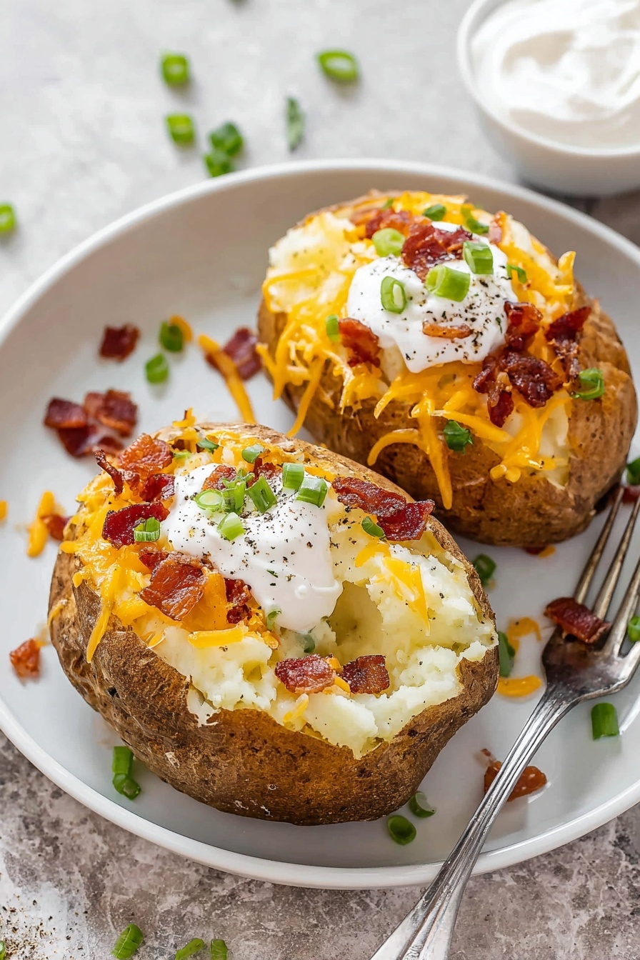 I’m a big fan of topping these potatoes with crispy bacon bits, finely sliced green onions, and a generous dollop of sour cream. The green onions add a lovely color contrast and a mild onion bite that complements the richness perfectly. Feel free to add a sprinkle of fresh chives or even a pinch of smoked paprika for a bit of extra flair.