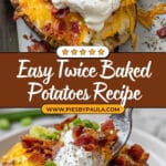When they’re fresh out of the oven, I like to finish my Twice Baked Potatoes with Bacon and Cheese Recipe with a sprinkle of sliced green onions, extra bacon bits, and a dollop of sour cream. It adds a fresh pop and a little extra zing that balances out the rich filling. Serve them hot and watch everyone’s faces light up.
