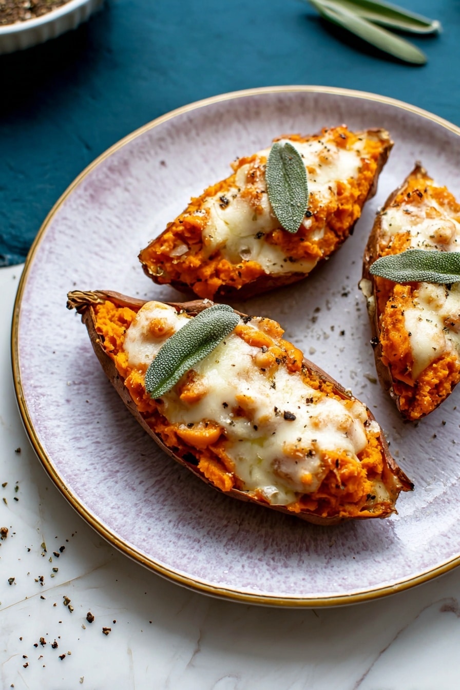 My favorite way to reheat the Twice Baked Sweet Potatoes with Pumpkin and Crispy Sage Recipe is in the oven at 350°F for about 15-20 minutes. This warms them through uniformly and keeps the cheese melty without drying out the potatoes. Avoid microwaving if you want to preserve that lovely crispy sage and texture.