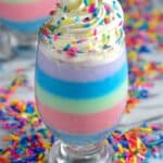 - Add toppings: Right before serving, top each cup with a generous swirl of whipped cream, sprinkle colorful sprinkles on top, and finish by inserting a twisty lollipop to resemble a unicorn horn.
