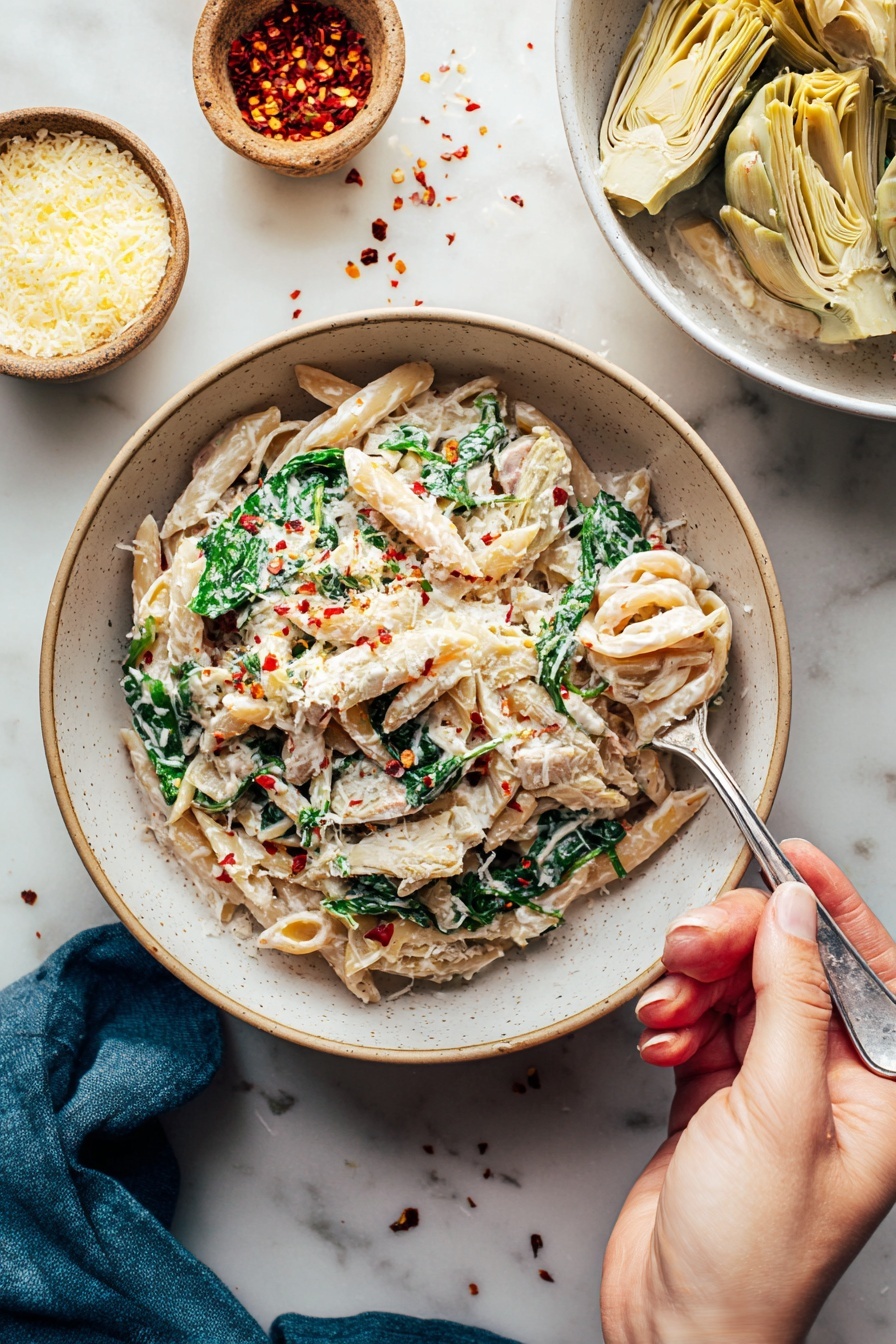 This Vegan Spinach Artichoke Pasta Recipe is all about fresh, wholesome ingredients that blend beautifully. I find that using soaked cashews for the sauce really makes it creamy and smooth, and the combo of shallots and garlic builds a fantastic flavor base. When it comes to pasta, feel free to pick your favorite—even gluten-free options work great here!