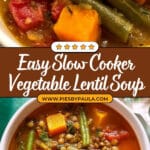 A hearty and nutritious Vegetable Lentil Soup featuring butternut squash, carrots, lentils, and flavorful herbs, slow-cooked to perfection for tender lentils and rich flavors. Ideal for a comforting, wholesome meal.