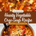 A hearty and comforting Vegetable Orzo Soup packed with tender vegetables, flavorful broth, and delicate orzo pasta. This easy-to-make soup combines onions, carrots, celery, potatoes, tomatoes, and corn simmered to perfection with Italian seasoning and a hint of sweetness, offering a nourishing and warming dish perfect for any meal.