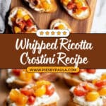 - Assemble Crostini: Spoon a generous dollop of the whipped ricotta onto each toasted baguette slice. Top each with a spoonful of the tomato mixture for a fresh, flavorful finish.