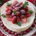 - Decorate: Adorn the top of the mousse cake with fresh strawberries and raspberries. Dust lightly with icing sugar and add fresh mint leaves for color contrast.